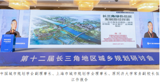 學術報告階段,會議特邀中國城市規劃學會副理事長、上海市城市規劃學會理事長、原同濟大學常務副校長伍江,安徽省住房城鄉建設廳一級巡視員高冰松,長三角區域合作辦公室經濟發展組副組長、上海市發展改革委長三角一體化發展處副處長黃超明,江蘇省城市規劃研究會副理事長、江蘇省規劃設計集團有限公司總經理、黨委副書記梅耀林分別作了題為《長三角綠色低碳發展路徑探——長三角生態綠色一體化示范區“水鄉客廳”近零碳規劃》《修舊如“新”——基于“更(gèng)新”的保護與利用》《落實長三角一體化發展國家戰略的探索與實踐》《國家文化公園規劃編制探索》的報告。學術報告由浙江省國土空間規劃學會理事長、浙江工業大學設計與建筑學院院長、教授陳前虎主持。